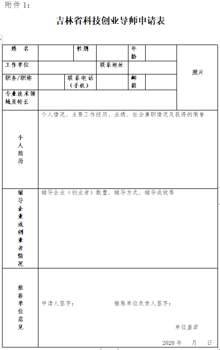 附件:1.吉林省科技創(chuàng)業(yè)導(dǎo)師申請表